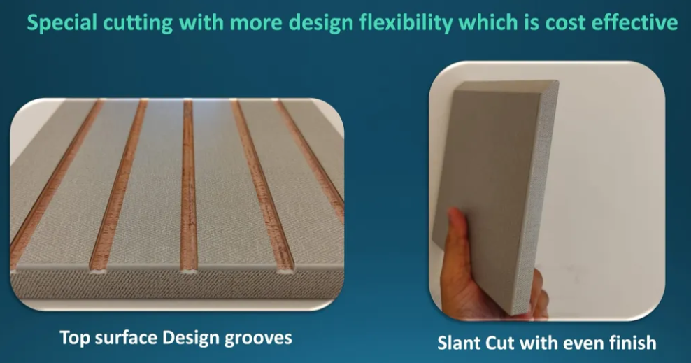 Example, slant cut is required for handle less doors or drawer faces. Hand cut slant pieces are very
