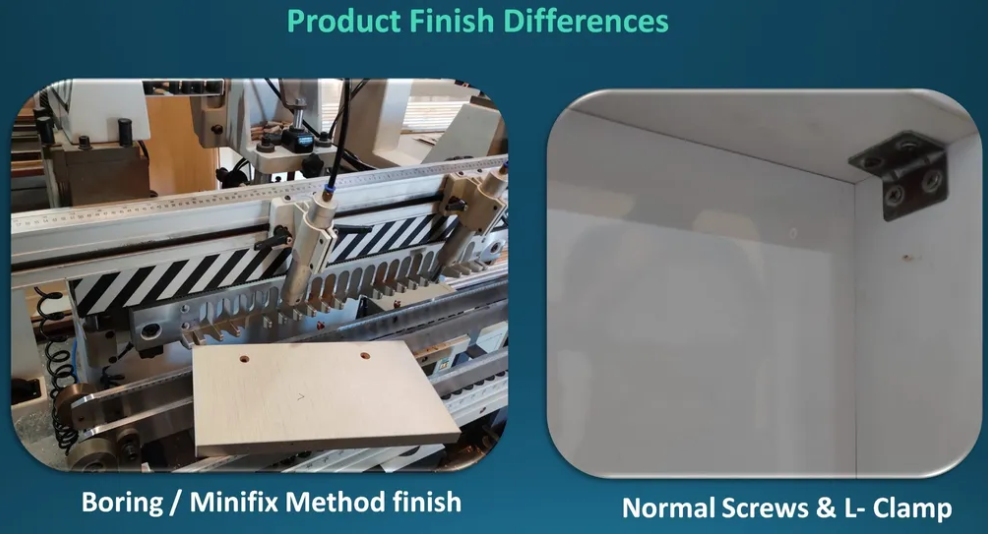Minifix holes are done on each part of every box so that carpenter can fixed