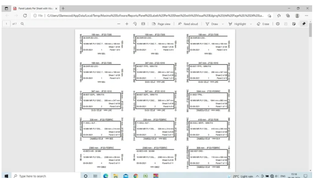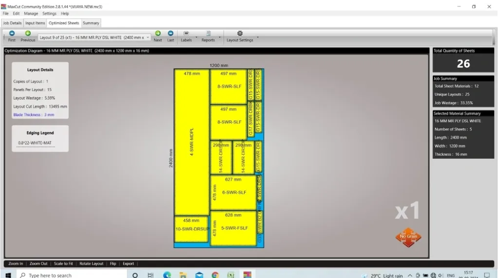 parts as per material finishes and then maps similar ones onto plywood sheets.